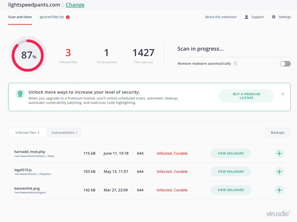 VirusDie automatically protects websites against malicious code and online threats. They provide free services and help website owners keep their site safe.